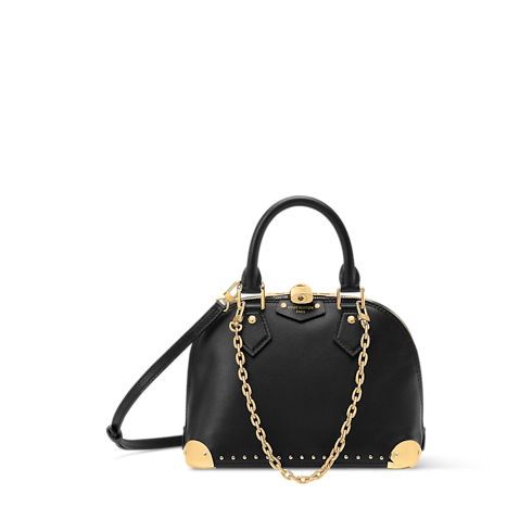This edition of the Alma Trunk BB is offered in a timeless smooth calfskin. It is defined by gleaming gold-toned hardware, from the signature padlock to the trunk-inspired corners and decorative chain. Elegant and functional, it is sized to fit daily essentials and includes a flat pocket to keep a cardholder or smaller items secure.