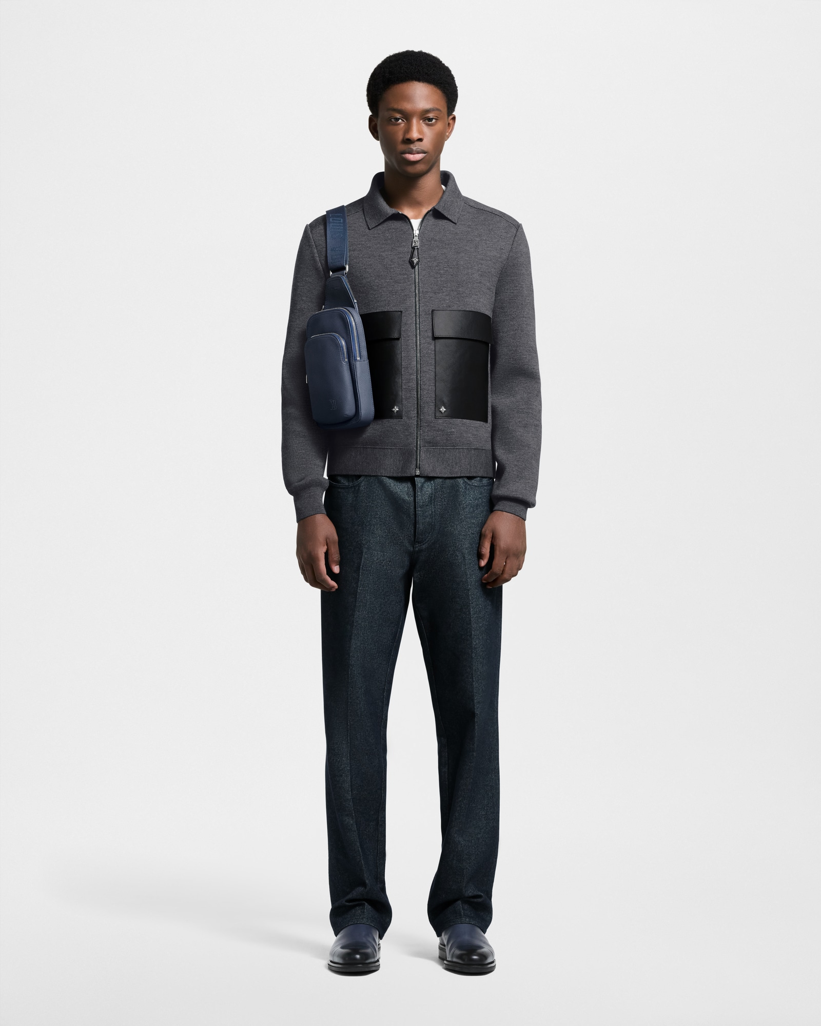 The Avenue Slingbag PM is crafted from waxy calfskin, a leather as durable as it is supple, and adorned with the embossed LV Initials of the LV Aerogram collection. It features a main compartment, a zipped front pocket, and a small zipped triangular pocket. The adjustable strap allows it to be worn on either shoulder.