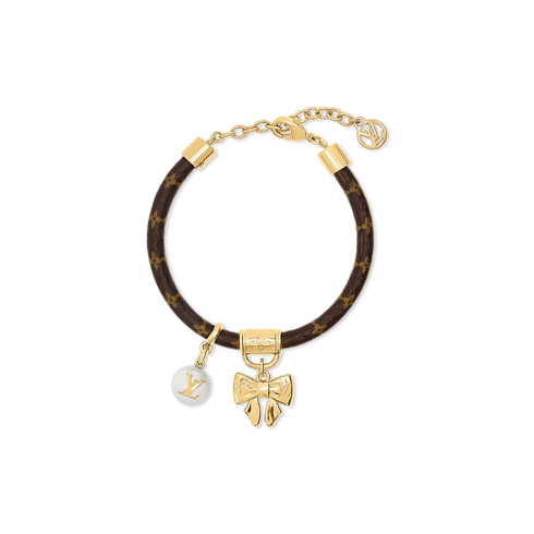 The unique design of the Charms Nœud bracelet was inspired by the feminine allure of elegant charm jewelry. Suspended from a Monogram canvas cord, its centerpiece is an adorable bow, paired with a radiant resin pearl accented with the LV Initials signature. This eye-catching bracelet is perfect for adding a touch of delicate flair to any outfit.