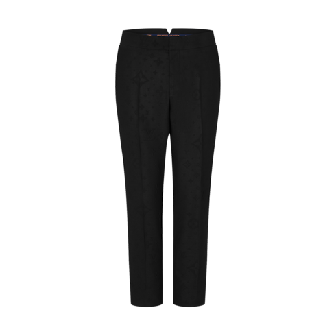 These elegant eveningwear pants are tailored in a cigarette fit. Their lightweight wool-blend fabric is adorned with an all-over debossed Monogram motif, with satin side bands adding a tuxedo-style effect. The pants are half-lined for extra comfort.