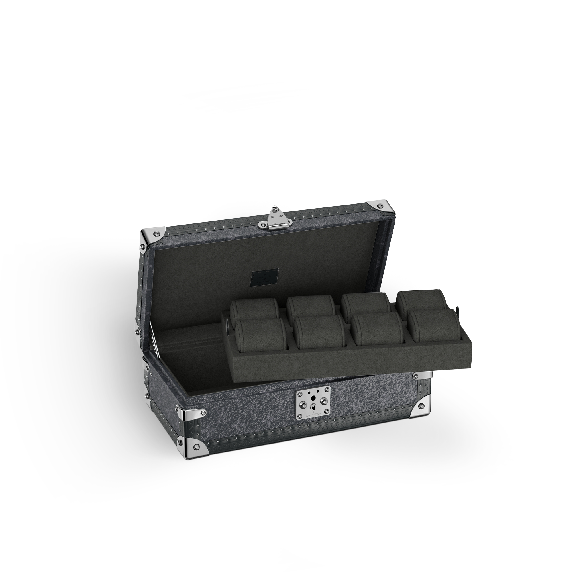 Smart and elegant, the Coffret 8 Montres enables the masculine clientele to safely carry their most precious watches. It comes with the masculine Monogram Eclipse signature.
