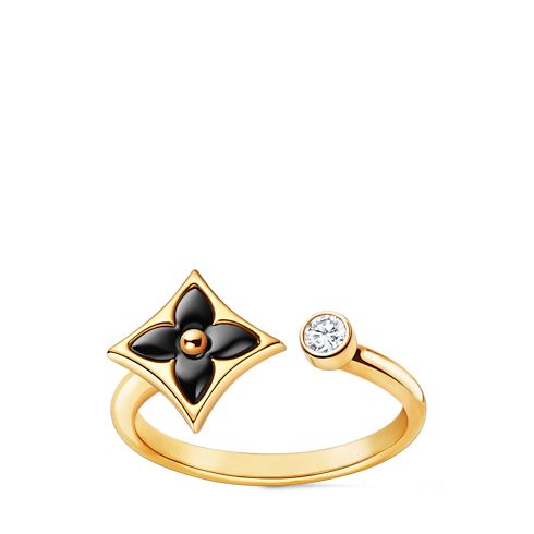 Color Blossom Mini Star Ring, Yellow Gold, Onyx and Diamond