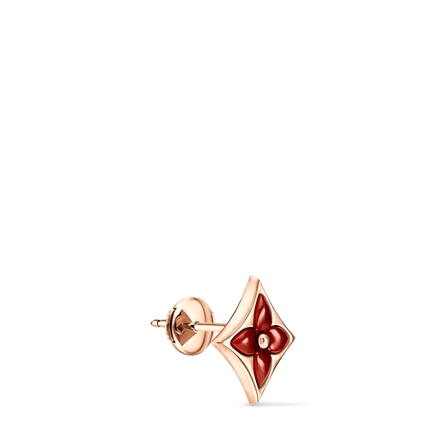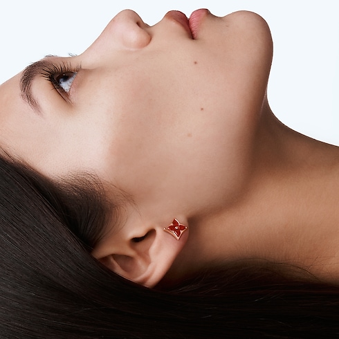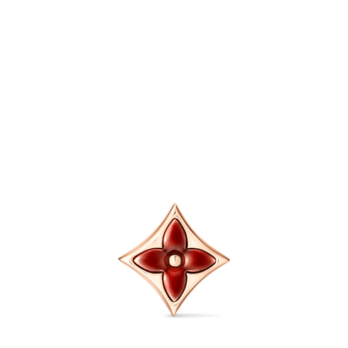 The Color Blossom pieces celebrate the emblematic Monogram Flower, designed in 1896 by Georges-Louis Vuitton, son of the founder. Set into 18-karat pink gold, this precious ear stud features a Star motif carved from red-hued cornelian, hand-polished to a high gloss. Months of work were necessary to perfect the stone’s subtle curves and sparkle. This delicate ear stud is an invitation to stack, mix or match with other models from the collection.