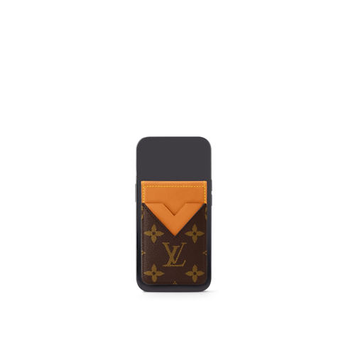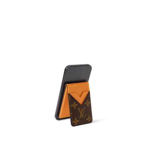 Made from Monogram canvas and natural cowhide leather, the Compact Magnet is a foldable magnetic wallet designed to attach to an iPhone. Compatible with any iPhone or case with MagSafe technology, it offers two front card slots and three inside ones. It also doubles as a stand, holding the phone upright on any flat surface.