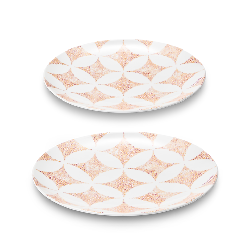 This elegant set of two dessert plates exemplifies the House’s tradition of creativity and fine craftsmanship. The Constellation pattern, an intricate motif incorporating the iconic Monogram Flower and Diamond, is delicately rendered in fine porcelain for a striking graphic effect. Combining decorative appeal with functional quality, these versatile plates are also machine washable and microwave safe.