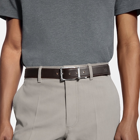 The Corner Pin Trunk 35mm Reversible belt is a simple silhouette inspired by the Louis Vuitton heritage of excellence in craftsmanship. The smooth leather on both sides pairs with a square buckle detailed with metal embellishments meant to mimic the rivets of the House's signature trunks. The versatile style suits casual to more formal wear.