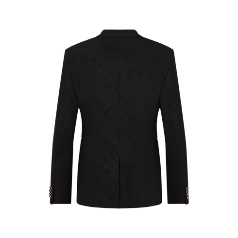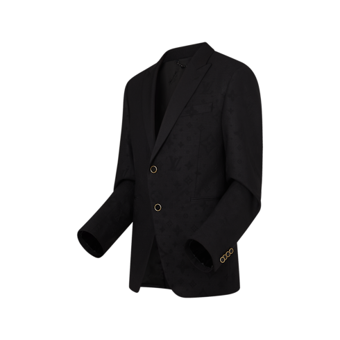 Tailored in a modern cutaway fit, this sophisticated piece features tuxedo-style satin peak lapels. Its lightweight fabric is signed with an embossed Monogram Galaxy motif. Details include enameled buttons on the front opening and cuffs, and a Louis Vuitton signature lining.