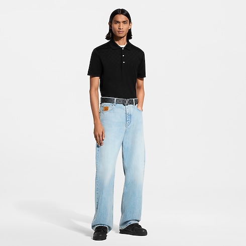 This essential polo shirt in organic cotton piqué is crafted with a discreet allover Damier jacquard and signed with an embroidered Marque L.Vuitton Déposée on the left chest. Elevated with three pearl-effect buttons on the closure for a dandy twist, this piece completes a wide range of everyday looks.