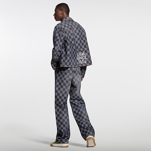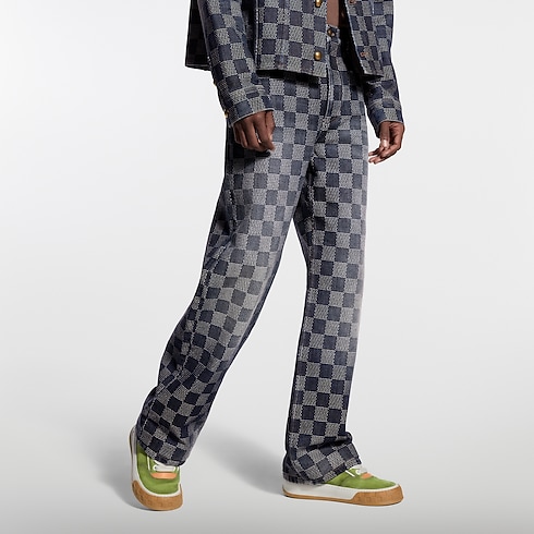 These casual denim skate pants feature a graphic allover Damier motif woven directly into the fabric. The certified cotton is washed and brushed for a soft vintage finish, while a Mini Damier nubuck jacqueron signs the rear waist. This piece has a matching shirt for a signature look.
