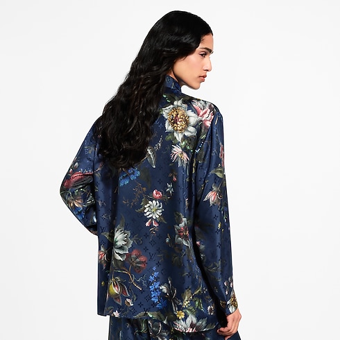 This elegant silk shirt is reimagined for the season in a moody floral print in midnight tones, while a lustrous Monogram jacquard adds a subtle allover signature. It is crafted in a breezy straight shape with a smart collar, fastened cuffs and button front for a classic tailored finish.