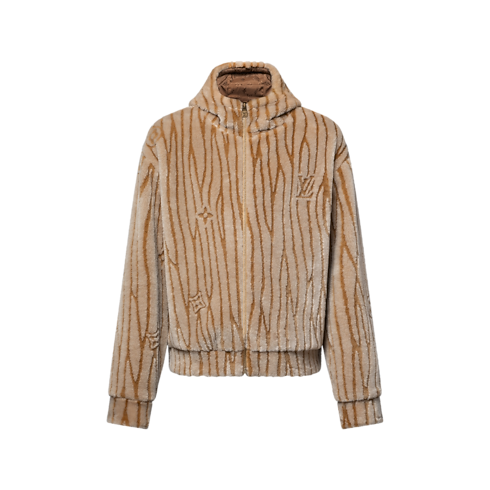 This cozy hooded blouson features soft fur-like fleece with a graphic Epi motif that nods to the House’s leather goods heritage. The graphic camel and beige pattern incorporates Monogram signatures and a cursive Vuitton on the back in a textured 3D effect. This standout casual style is perfect for relaxing with friends after an exhilarating day in the snow.