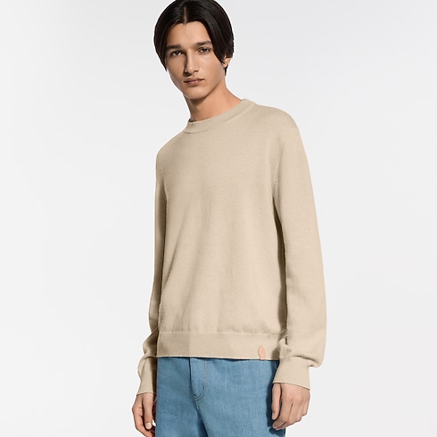 This pale beige crewneck is crafted from pure, certified cashmere, combining timeless elegance with unparalleled comfort. The fine knit is exceptionally soft and warm, making it ideal for midseason layering. It is signed with a VVN leather tab on the bottom left hem in homage to the House’s heritage trunks.