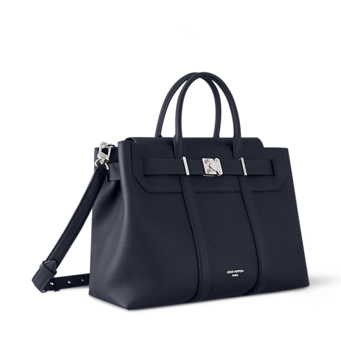 Made from rich grained Cuir Millesime calfskin, in an elegant deep-dyed colorway, the Georges Tote MM emanates masculine glamour. The palladium-color S-lock, long top handles, and unconventional silhouette make it aggressively stylish. The calfskin is sourced from the Domaine des Massifs, known for the quality of its leather and its ethical breeding philosophy.