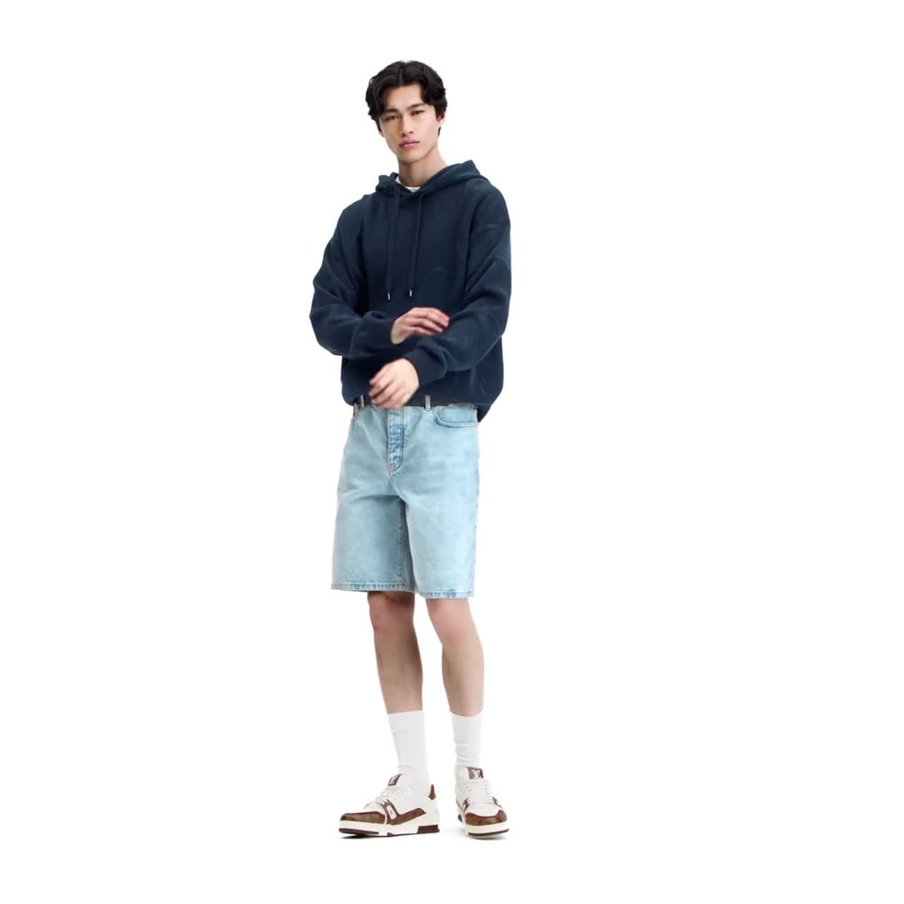This casual blue hoodie draws on the Spring-Summer 2025 show’s explorer universe. Tone-on-tone Monogram signatures encounter velvety horizontal stripes echoing the flocked pieces in the Spring-Summer 2025 show. This richly executed, tactile piece brings a subtle signature accent to everyday looks and is easy to style with this season’s blue silhouettes.