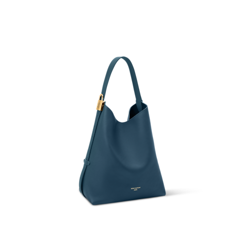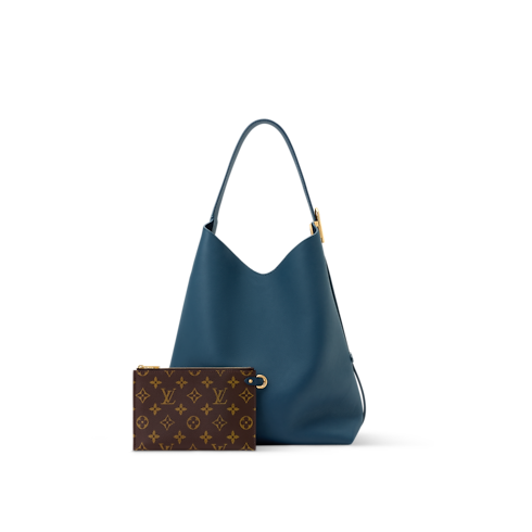 The Low Key collection presents this refined Prussian Blue edition of the Hobo MM, crafted from supple calf leather in a distinct bucket-style silhouette. This elegant design is embellished with aged gold-toned hardware that matches the Louis Vuitton lettering across the front. Inside, there is a removable zipped pouch patterned with the iconic Monogram, and there is enough space for daily essentials, including a notebook.