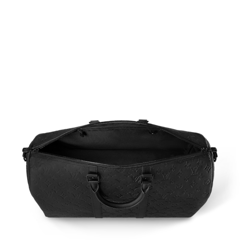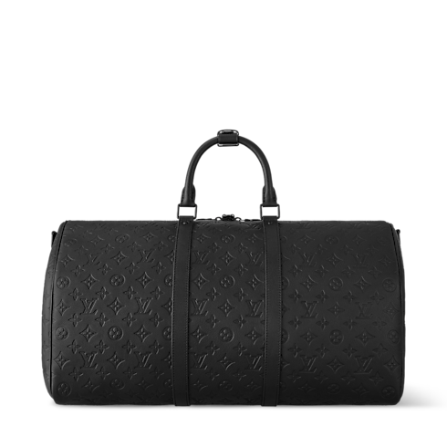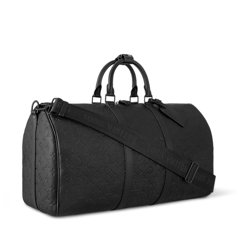 A Louis Vuitton icon, the Keepall Bandoulière 50 is revisited in Monogram Shadow leather, embossed all over with the Monogram pattern. The minimalist design is complemented by matte black hardware. Launched in the 1930s, the Keepall was the original soft travel bag, and it remains as elegant as ever, with the cabin size ideal for short trips.