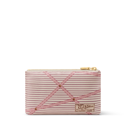 This striking version of the Louis Vuitton Key Pouch is from the Inside LV collection. It is made from soft textile, detailed with a unique design that displays the House’s Parisian store address from 1871. Fitted with a large zipped pocket, this sleek accessory is embellished with a gold-toned chain complete with a hook to attach keys.