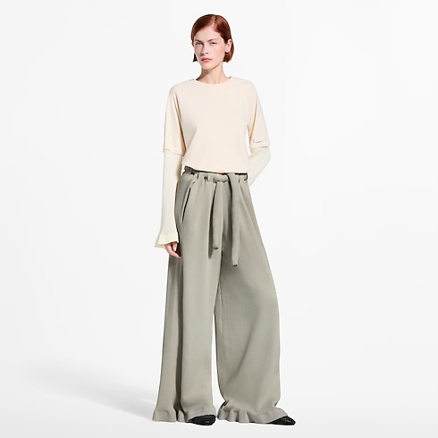 This T-shirt is casual and comfortable in fine cotton jersey spun in a loose straight shape. Tonal cotton-blend long sleeves create a laidback layered effect, which is underscored by fluid cuffs. The left shoulder is trimmed with this season’s slim leather Louis Vuitton Paris patch for an understated signature finish.