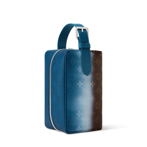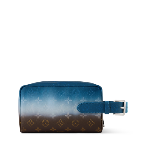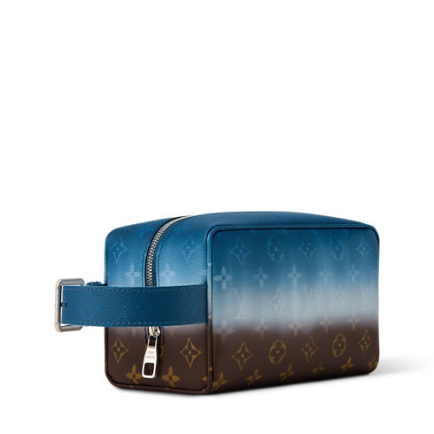 The Locker Dopp Kit is crafted from Monogram Pigment coated canvas, featuring a striking gradient Monogram Ebene motif. The technical printing process creates a vivid, layered effect. Colored leather piping and handle anchor the design, while a robust central zipper and spacious interior make it a standout choice for grooming essentials.