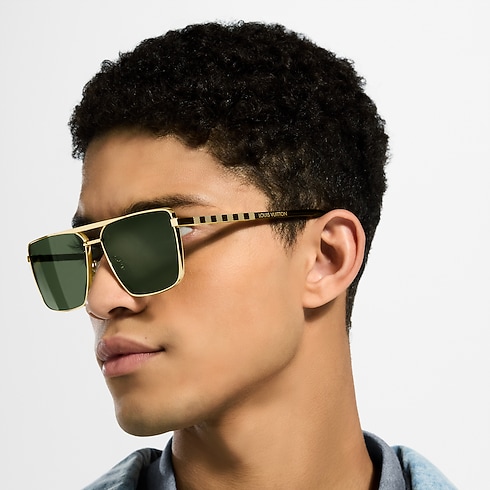Already an icon, the LV Attitude sunglasses are ushered into a new modern dimension and function by a cutting-edge square shape. The gold-toned metal silhouette features green-tinged lenses and temple arms engraved with the checkered Damier motif, while Crystal Green temples tips and adjustable nose pads promise long-lasting comfort.