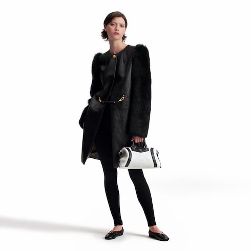 Opening the Spring-Summer 2025 runway, the LV Biker is a key style for the season and beyond. This PM edition is crafted from the House’s pixel lambskin in a timeless shade of gray, elevated with silver-toned hardware. Signature details include an LV Circle, which embellishes a V-shaped plastron in a contrasting leather trim. Use the side straps to expand its profile.