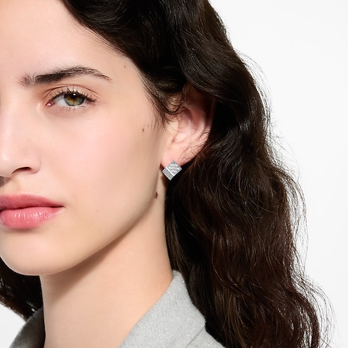 The distinctive design of the LV Cube earrings was inspired by the House’s iconic Damier canvas and Pateki, a puzzle game devised by Gaston Vuitton in 1932. The Damier checkerboard is materialized in sterling silver cubes, meticulously engraved with canvas-like stripes and the Louis Vuitton Paris signature. These eye-catching earrings add a glint of playful sophistication to any outfit.