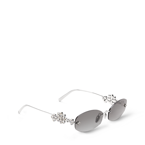 The boldly glamorous LV Dazzling Oval sunglasses offer a resplendent new take on a classic signature. Their spectacular temples, intricately crafted in palladium-toned metal, feature a constellation of Monogram Flowers and Initials enlivened with sparkling rhinestones. Monogram Flower studs on the oval-shaped lenses add a final House flourish to these elegant, sophisticated sunglasses.