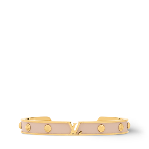 The striking design of the LV Initiales bracelet offers a creative variation on an iconic Louis Vuitton signature. Crafted in gold-toned metal, its studded band is lined with colorful leather, accented by the House’s initials with an original openwork look. Worn alone or stacked, this sophisticated bracelet adds a touch of timeless chic to any outfit.