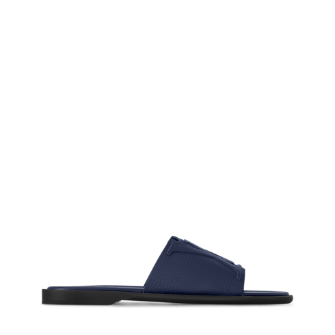 The LV Portofino mule is a casual-chic style made of supple, grained calf leather. Its wide front strap features a distinctive V-shaped cut-out and a raised LV Initials signature. This model has a leather insole stamped with the LV Initials and a rubber outsole bearing the Louis Vuitton signature.