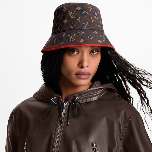 The bold and stylish LV Safari bucket hat adds an on-trend sporty-chic aura to any look. Adorned with an original pattern reinterpreting the iconic Monogram motif as a leopard print, it features a colorful Louis Vuitton signature for an unmistakable House touch. A fiercely fashionable way to make a unique, personal style statement.