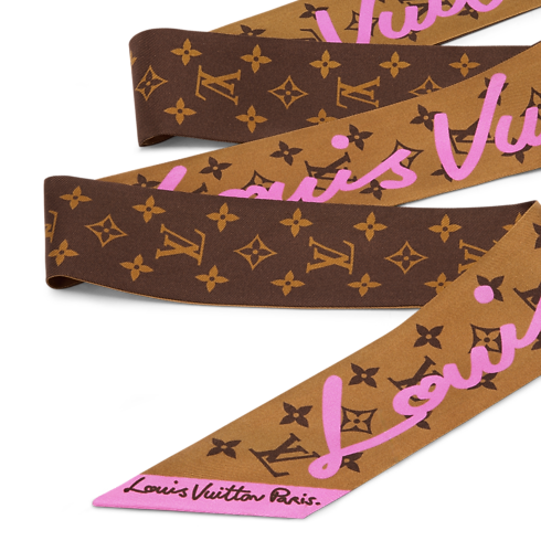 Crafted in sumptuous silk, the LV Script BB bandeau offers an original, on-trend way to wear the House signature. Its eye-catching print features the emblematic Monogram pattern accented with Louis Vuitton Paris lettering in a sleek hand-written style. This elegant, versatile accessory adds a touch of contemporary flair to any outfit.
