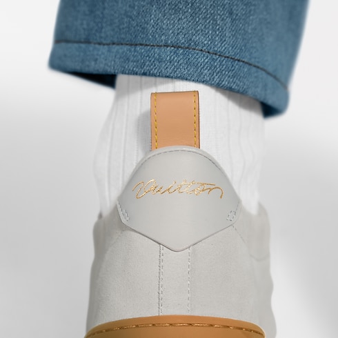 The LV Soft sneaker comes in supple suede calfskin with trim in the House's emblematic natural leather. In addition to laces, it features an elasticized heel for an easy, slip-on fit, and a sacchetto construction for lightness and comfort. It bears the LV Initials on the side and a Pharrell Williams-designed Vuitton signature at the back.