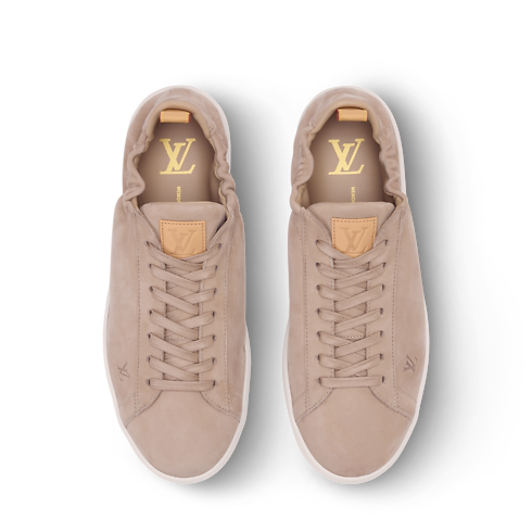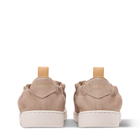 The aptly named LV Soft sneaker is distinguished by its extremely comfortable feel, the result of an upper in supple nubuck calf leather, a lightweight sacchetto construction, and a memory-foam insole. In addition to laces, this model has an elasticized heel for an easy, slip-on fit. Trim in the House's emblematic natural leather complements this design.