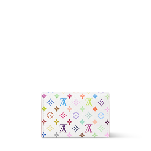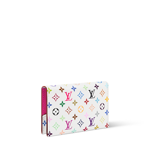 This celebratory edition of the Slim Card Holder marks 130 years of the Louis Vuitton Monogram, and is part of the Louis Vuitton x Murakami collection. Crafted from signature canvas, it is elevated with a multicolor version of the emblematic pattern and features a contrasting, yet equally vibrant leather lining. It is elevated with a gold-toned snap button and includes four card slots.