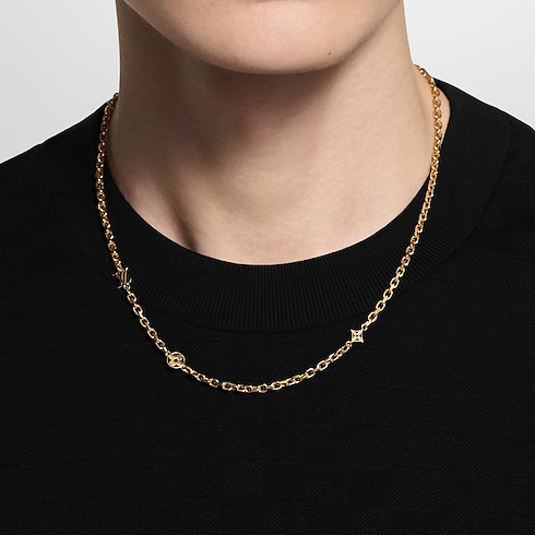 The LV Yours chain combines delicately constructed links with small insignia of the House. Its simplicity makes a statement, whether the necklace is worn with clusters of specially chosen collectible charms or as is, sans extra adornment. No matter the approach, the chain's versatility is perfect for both minimalists and daring trend-seekers.