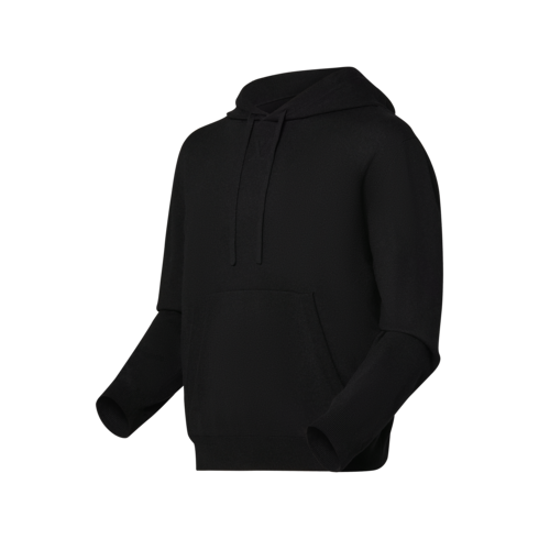 This cozy cashmere hoodie with a kangaroo pocket has a slim, compact fit. This timeless staple is revisited here in a seasonal color. It is distinguished with a gently embossed tonal embroidered LV signature on the chest, inside-out shoulder seams and a silk intarsia inside-out label on the back.