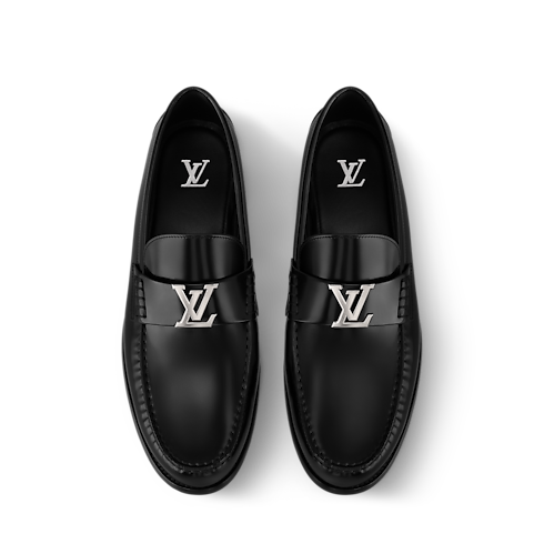 The sleek design of the Major loafer is highlighted by the glossy finish of glazed calf leather. This perennially stylish and versatile model is notable for its traditional Blake construction and hand-stitched vamp, both of which testify to the House's shoemaking craftsmanship. The vamp is signed with an LV Initials accessory in silver-toned metal.