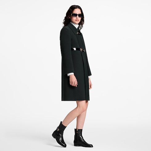 The Midtown flat ankle boot is an elegant style crafted from supple calf leather. Its upper is notable for the decorative belt-like strap with a partially leather-covered LV Initials accessory in gold-toned metal, which references the iconic Capucines bag. A durable leather outsole completes this design.
