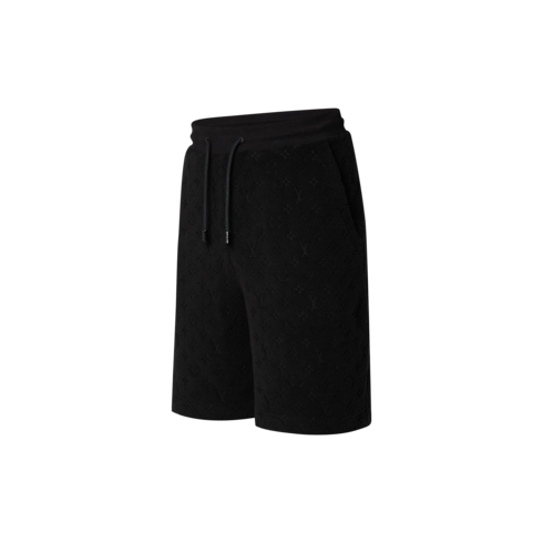 These shorts in soft French terry are ideal for relaxing after a trip to the beach. Both easy and refined, they have an adjustable drawstring waist, while the black cotton-blend fabric is distinguished with an allover debossed tonal Monogram signature. They can be worn as a set with a matching hoodie.