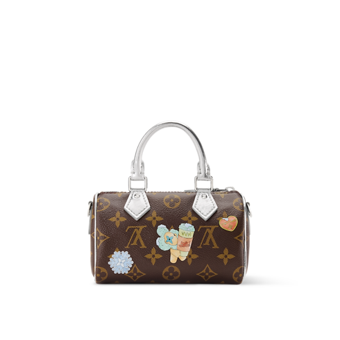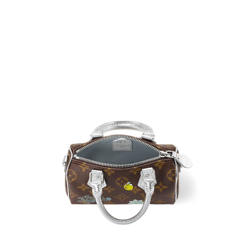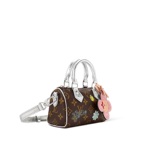 Exclusively designed for the 57th Street NYC store, this edition of the Nano Speedy features the House’s iconic mascot Vivienne as a playful charm. The style is crafted from signature Monogram canvas, trimmed with Silver leather to match the hardware. It is sized to fit everyday essentials and can be worn with or without the long strap.