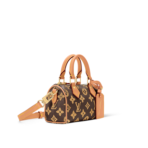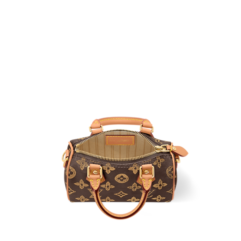 The iconic Nano Speedy is reimagined in Monogram Origine canvas to celebrate the 130-year anniversary of the House’s emblematic pattern. This elegant edition is adorned with gold-toned hardware and includes a unique label that is exclusive to the celebratory collection. It can be carried by hand or styled with the removable strap, and is sized to fit daily essentials, including a small wallet.