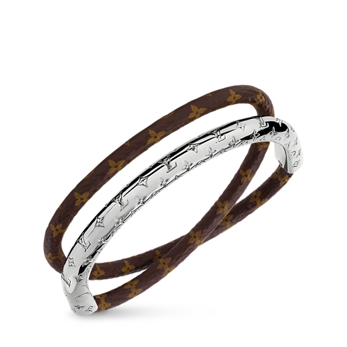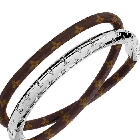 With its eye-catching contemporary design, the Nanogram Twist bracelet makes a striking style statement. Its double-wrap cord combines Monogram leather with a sleek curve of gleaming gold-toned metal, adorned with the Nanogram signature for a distinctive House touch. Creating an on-trend stacked look, this easy-to-wear bracelet is perfect for women who appreciate bold, creative accessories.