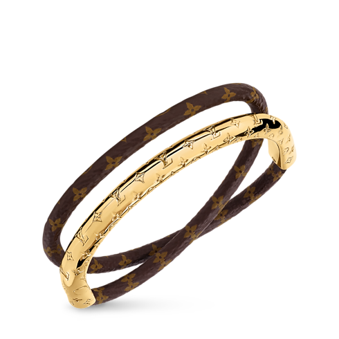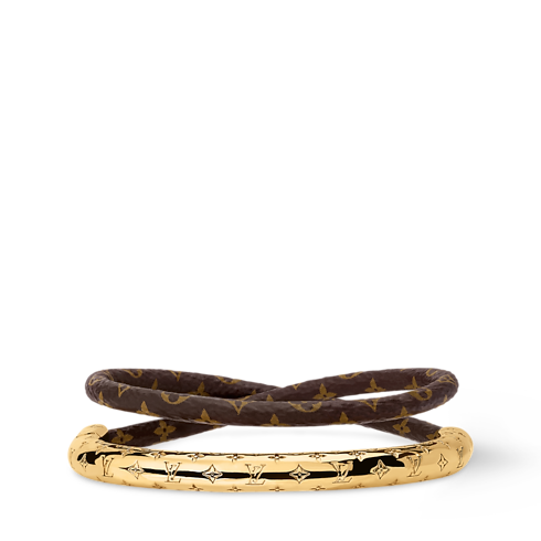 With its eye-catching contemporary design, the Nanogram Twist bracelet makes a striking style statement. Its double-wrap cord combines Monogram leather with a sleek curve of gleaming gold-toned metal, adorned with the Nanogram signature for a distinctive House touch. Creating an on-trend stacked look, this easy-to-wear bracelet is perfect for women who appreciate bold, creative accessories.