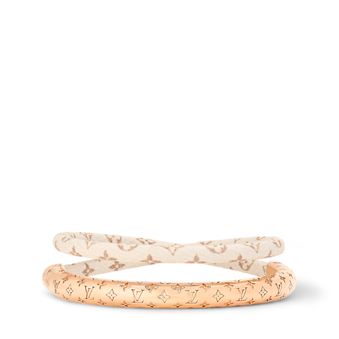 With its eye-catching contemporary design, the Nanogram Twist bracelet makes a striking style statement. Its double-wrap cord combines Monogram Dune leather with a sleek curve of rose gold-toned metal, adorned with the Nanogram signature for a distinctive House touch. Creating an on-trend stacked look, this easy-to-wear bracelet is perfect for women who appreciate bold, creative accessories.