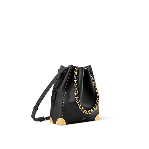Introducing the Noé Trunk, an elegant bucket-shaped style that is both timeless and contemporary. Crafted from smooth calfskin, it is adorned with sleek gold-toned hardware, including trunk-inspired corners that nod to the House’s iconic travel heritage, as well as a removable braided chain. It is designed with a drawstring closure to keep valuables secure.