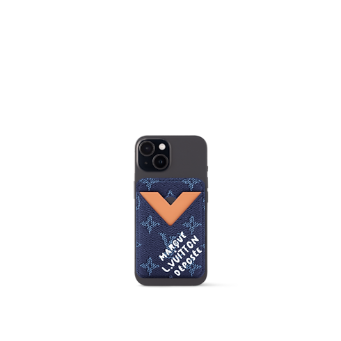 Designed to attach to any iPhone with MagSafe technology, the Magnetic Card Holder is made from colored Monogram Heritage coated canvas with cowhide-leather lining. Contrasting leather highlights the V-shaped card slots. Elegant and functional, this card holder is ideal for credit, commuter cards, or other small essentials.