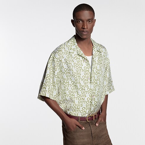 This fluid shirt, crafted from organic silk, is elevated with a printed LV Maze motif from the Spring-Summer 2026 show. Graphic green and blue Louis Vuitton lettering, inspired by hand-painted billboards from this season’s voyage to India, brings a modern accent to the milky white base. Matching shorts make a laid-back yet luxurious set.