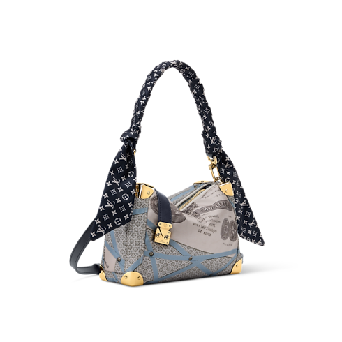 Part of the Inside LV animation, this Side Trunk MM offers a unique take on the original design. Showcasing a plethora of contrasting textiles,inspired by the historical trunk's interior to the Monogram-patterned scarf detail that adorns the handle, this compact style celebrates the very best of Louis Vuitton. It is adorned with gold-toned trunk corners and an iconic S-lock closure, all of which honor the House’s travel heritage.