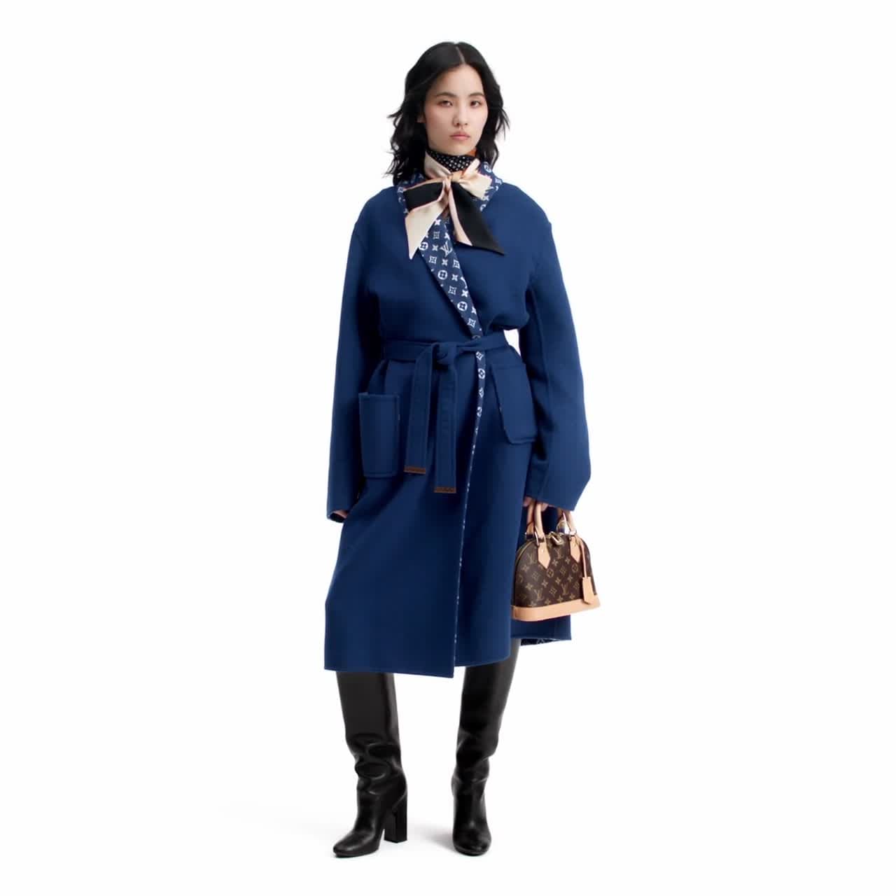 The House’s signature wrap coat is crafted from a lightweight double-face blend of wool, cashmere and silk in an elegant seasonal shade. The inside is signed with a Monogram jacquard, which can be glimpsed on the shawl collar, while a casual self-tie belt adds definition to the waistline and two patch pockets complete the look.