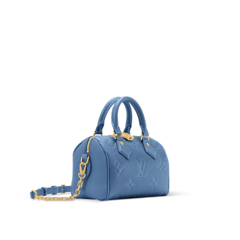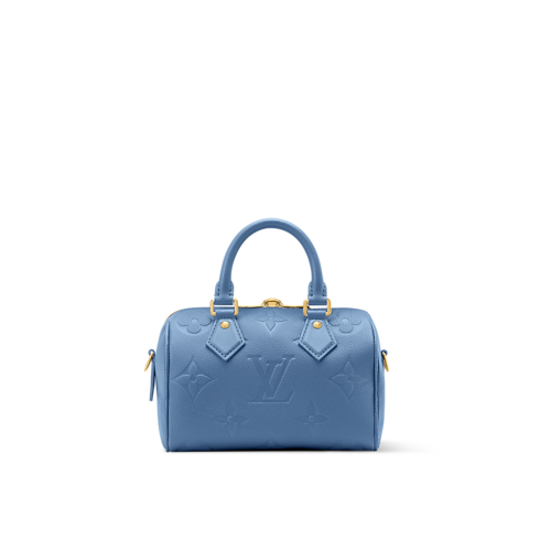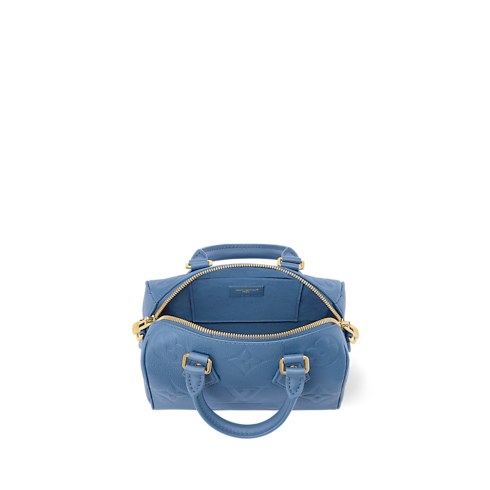 This edition of the iconic Speedy Bandoulière 20 showcases a sleek Blue Jean palette. Contemporary and chic, it is crafted from signature Monogram Empreinte leather and accented with a gold-toned padlock and keys to honor the House’s iconic travel heritage. It is sized to fit everyday essentials and can be worn cross-body, over one shoulder or carried by hand.